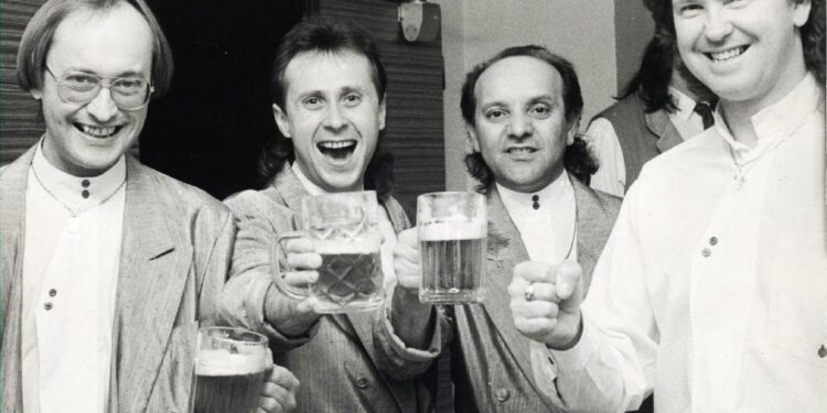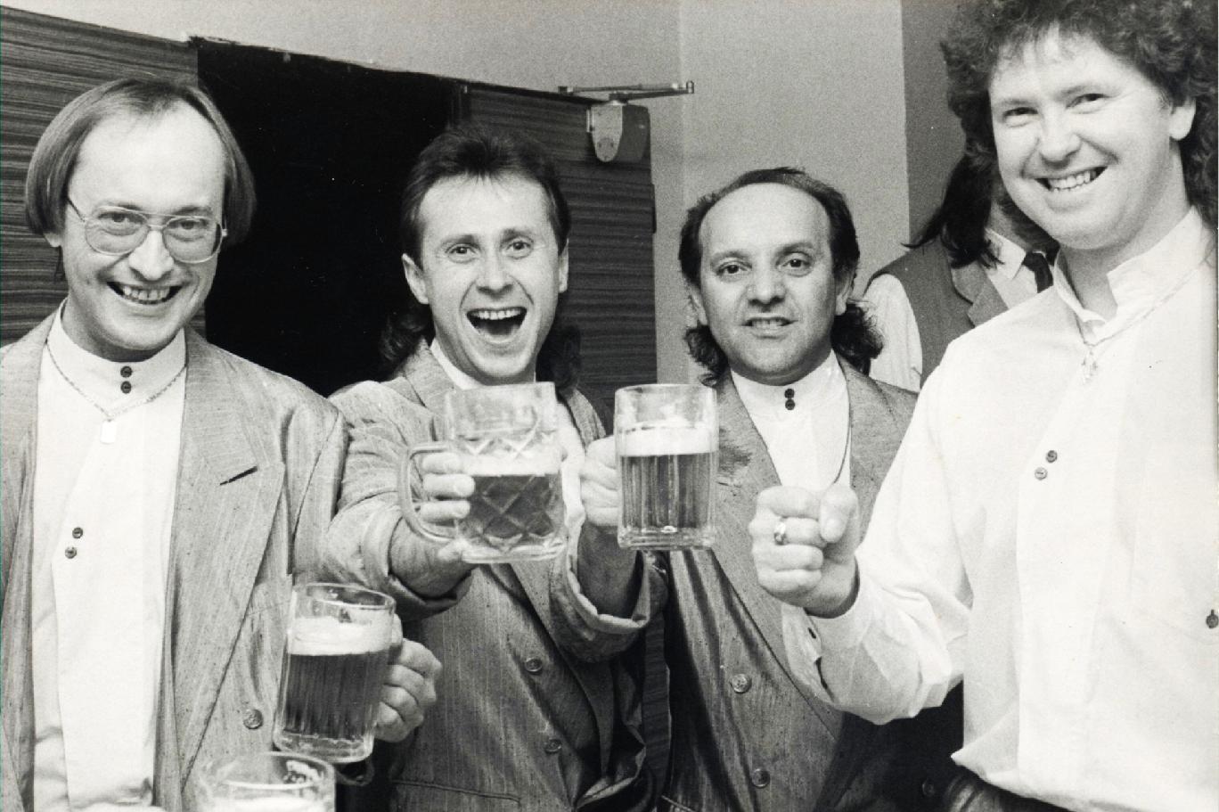 Ples podnikatelů se konal v roce 1993. Fotografie Ládi Báby zachycuje muzikanta Jardu Kleina s přáteli. Poznáte je? 🙂