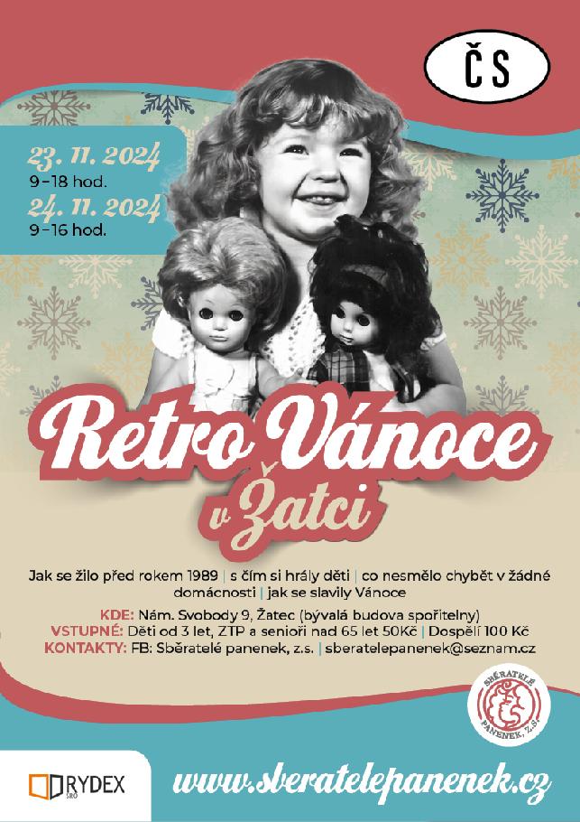 V termínu od 23. do 24.11.2024 bude v Žatci probíhat výstava s názvem „Retro Vánoce v Žatci“. V rámci této akce budou moci návštěvníci spatřit, jak se žilo před rokem 1989, s čím si hrály děti, co nesmělo chybět v žádné domácnosti a hlavně jak se slavily Vánoce. V rámci výstavy bude také připraven fotokoutek, kde bude možné se vyfotografovat s retro hračkami.