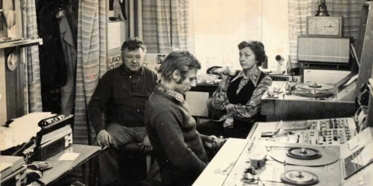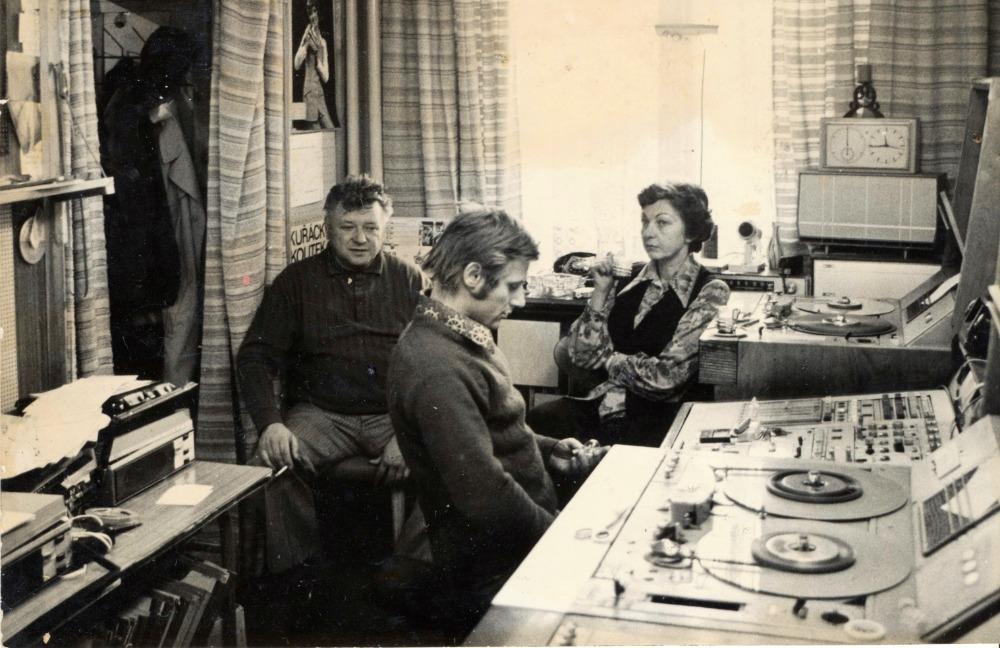 Pamatujete na „dráťák“, nebo-li Rozhlas po drátě. Dnešní terminologií by asi šlo o dceřinou společnost Českého rozhlasu. Mimo hudby dráťák vysílal aktuality z města a kulturní pozvánky. Každá relace se točila na velké studiové magnetofony a bylo okresní a městské vysílání. Redakce byla na radnici, v místnostech pod dnešní zasedačkou. Na snímcích muzikant a kapelník orchestru SAKS Vladimír Matějka, hlasatelka Jitka Škaloudová, technik František Bartoň a redaktorka Milena Reimová. Nesmíme ale zapomenout i na další jména Jiří Kubovský, Vladimír Čermák či Petr Pavlíček.