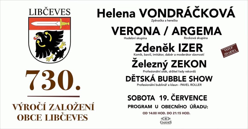 Zpěvačka Helena Vondráčková bude hlavním hostem 730.výročí obce Libčeves, které se bude konat 19. července 2025. Program je řádně nabitý!