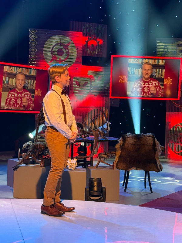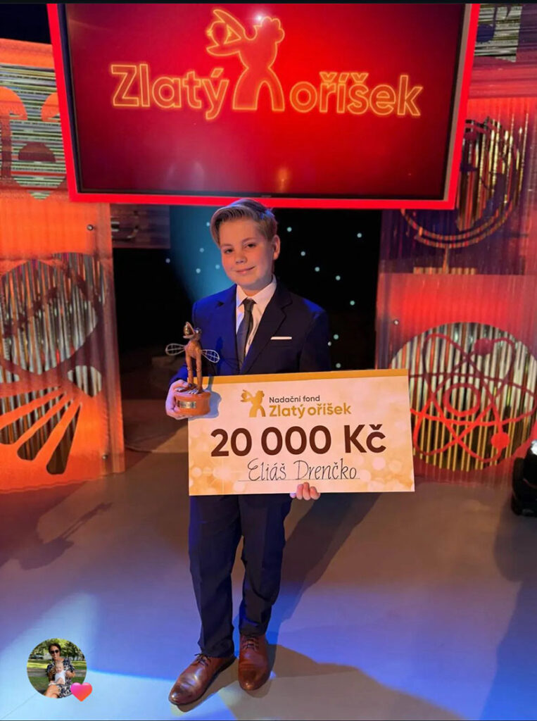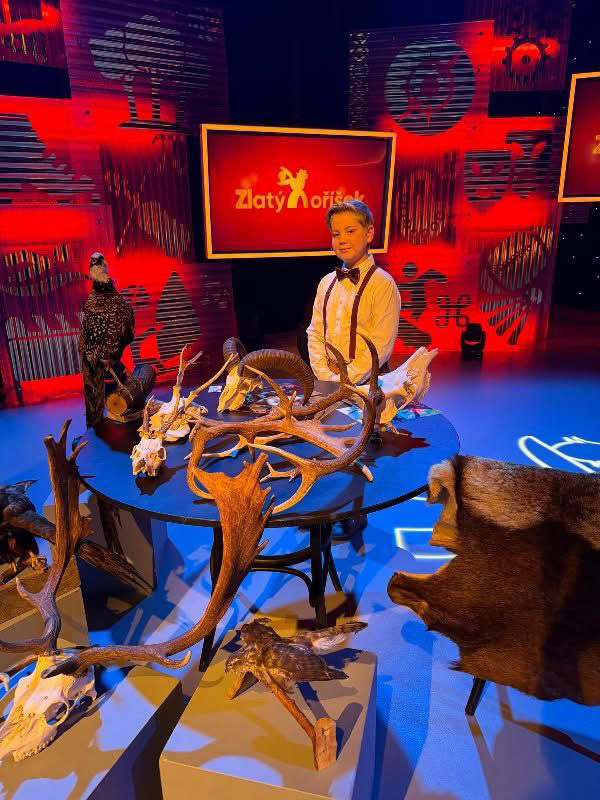 při přenosu České televize z finále Zlatého oříšku, soutěže pro aktivní, nadané a úspěšné děti České republiky (https://www.zlatyorisek.cz/ceska-republika/). Nejen nás ve škole totiž přesvědčil o své vášni pro přírodu, vytrvalosti a kreativitě, díky níž se mj. již od roku 2024 zdatně věnuje popularizační přednáškové činnosti. Hluboký zájem o přírodu doplňující se s Eliášovou schopností vyprávět o ní s nečekanou lehkostí a širokou znalostí mu vynesl nominaci do finále soutěže, kterou pak před televizními obrazovkami dovedl k vítězství! ![]()