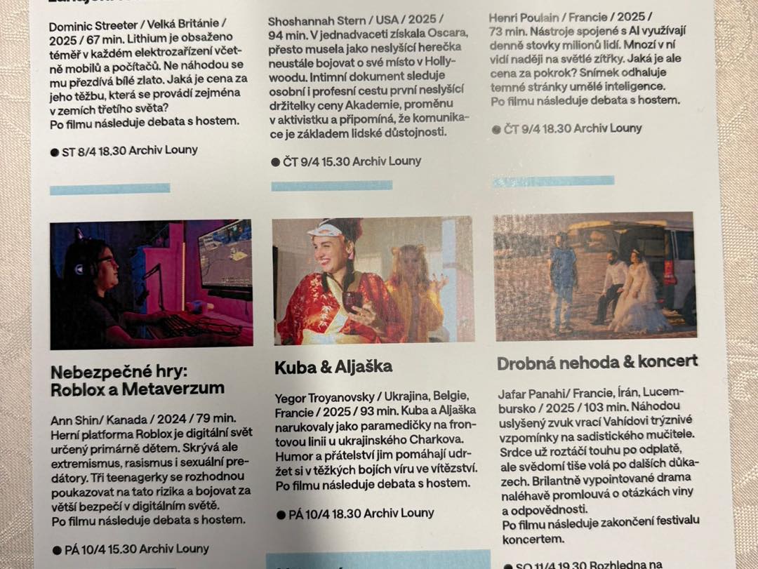 Jak jsme vás informovali, koná se v Lounech festival o lidských právech Jeden svět. Pokračuje i dnes.