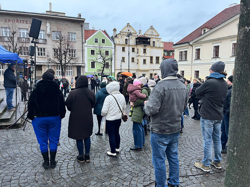 V neděli 22.února 2026 se na Mírovém náměstí konalo shromáždění, jako připomínka nesmyslné války na Ukrajině a uctění jejích obětí.
