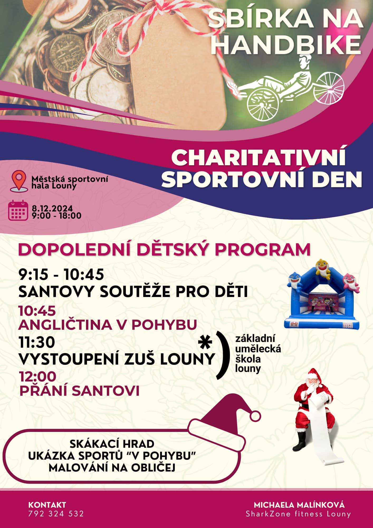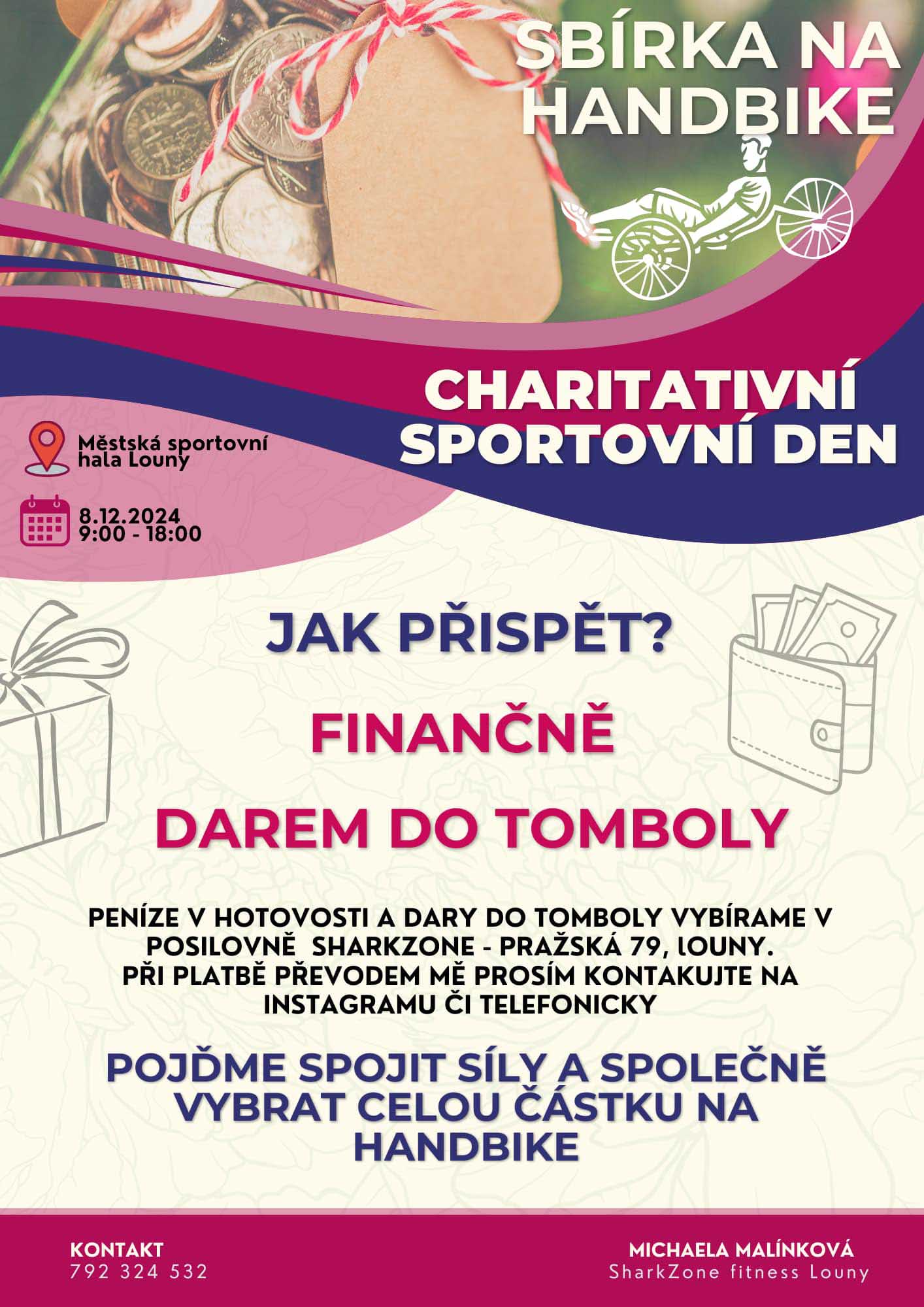 V městské sportovní hale se bude konat charitativní sportovní den pořádaný fitness klubem SharkZone. Akce se koná 8. prosince a vy se můžete pobavit, zasportovat a přispět na dobrou věc a sice handbike!